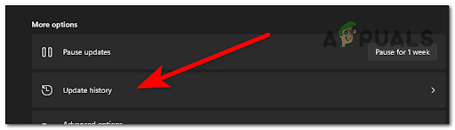 Windows Update menu - In the Windows Update menu, click on Update history.