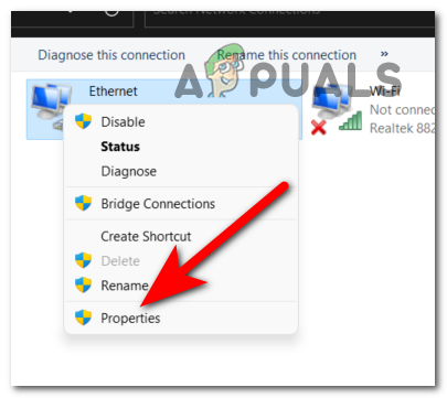 Network Connections menu - Within Network Connections, right-click your active network connection and select Properties.