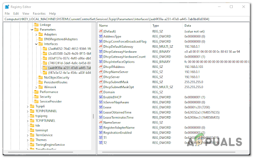 Computer\HKEY_LOCAL_MACHINE\SYSTEM\CurrentControlSet\Services\Tcpip\Parameters\Interfaces