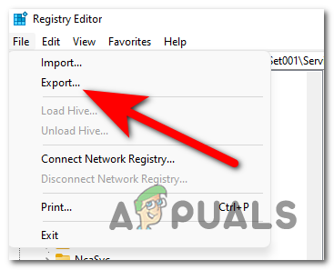 - Inside the Registry Editor, first create a backup. Click on File in the top left corner, then select Export. In case of necessity, you can click on Importand select your backup file.