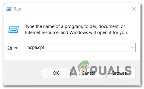 - Invoke a Run dialog box using Windows key + R. Type ‘ncpa.cpl’ and hit Enter to open the Network Connections.