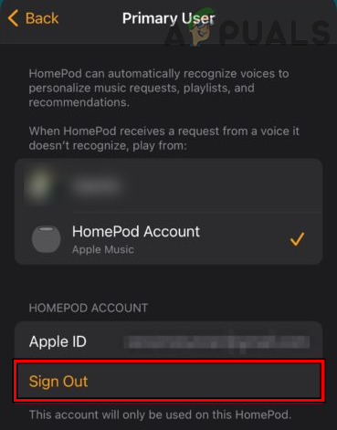 Sign Out of the HomePod - Now confirm to Sign Out of the Apple ID and power cycle the HomePod.
