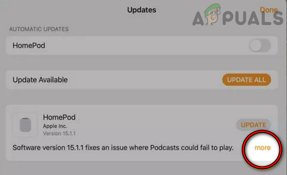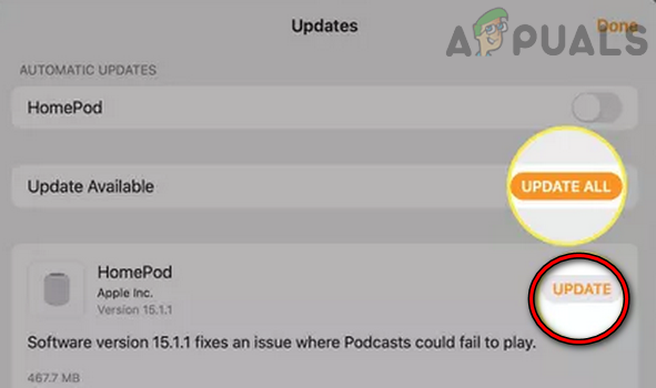 Tap on Update for the HomePod on the iPhone’s Home App - Now, wait till the update process completes, and once updated, check if the HomePod is responding normally.