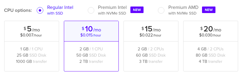 Buying the Minecraft Server on Digital Ocean - Scroll down and choose a plan for your Minecraft server depending on the number of machines accessing this server. As of writing this post, the available plans include Basic, DEDICATED CPU, General Purpose, CPU-Optimized, Memory-Optimized, and Storage-Optimized. We will select the Basic plan with 2GB memory, 50GB SSD storage, and 2 TB data transfer.