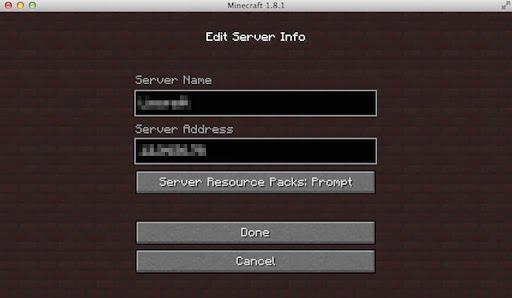 Connecting to the Hosted Server on Digital Ocean - On the screen that appears, click Add Server and enter your Digital Ocean Minecraft Server public IP address. Click Done when finished.
