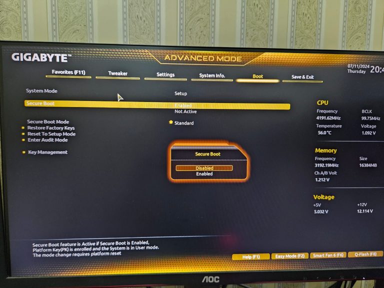 - Navigate to the “Boot” tab and find a setting that says “Secure Boot“. Set this to “Enabled“.