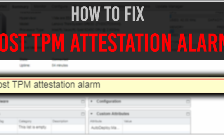 The “Host TPM Attestation Alarm” is a very complex and detailed topic if you get into the nitty-gritty, however, fixing this problem involves just 2 simple checks. Do note that there can be a large number of issues if you’re setting up this feature, such as hashing algorithms, managing many hosts, and whatnot, but they can get extremely specific.