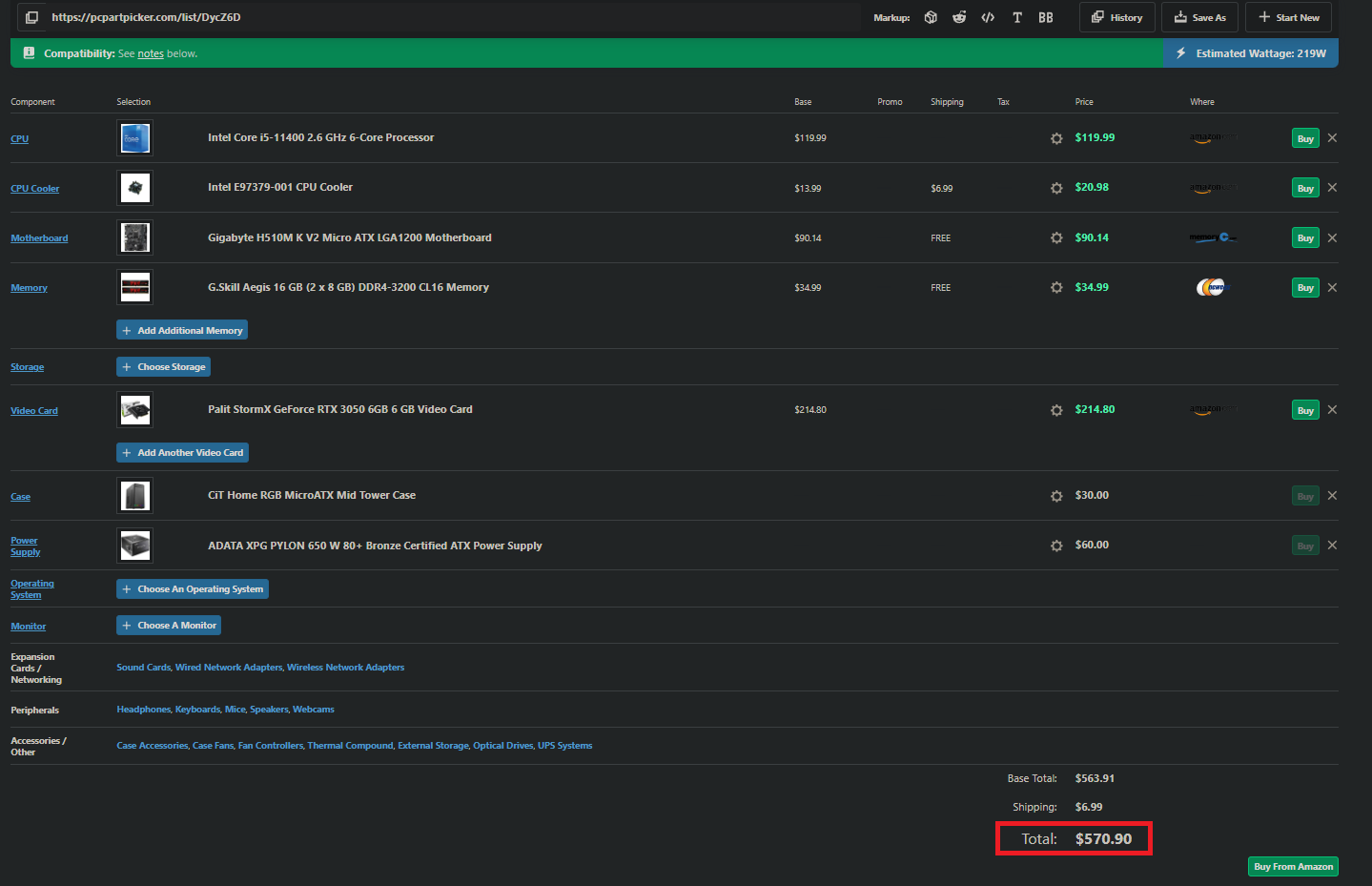 - Keep in mind, you might not find the prices for every single part here, especially if it is restricted to a few regions only. The final estimate for our build comes out to be $570. On purchase, this PC cost around $720. We’ll share a detailed chart below.