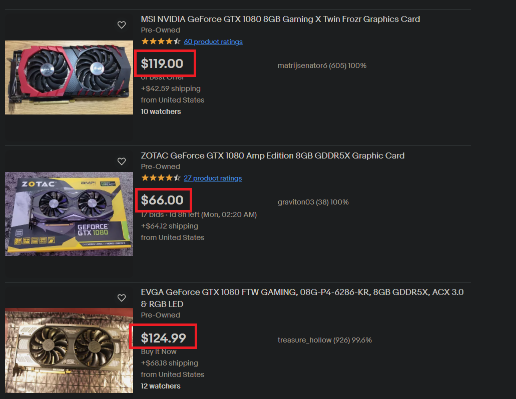 While we’re at it, based on eBay’s data, the GTX 1080 has a Nominal Price of $100–$120 in the US, much lower than in Pakistan. This is why it is important to not only rely on the Nominal Price but also research your local market as well.