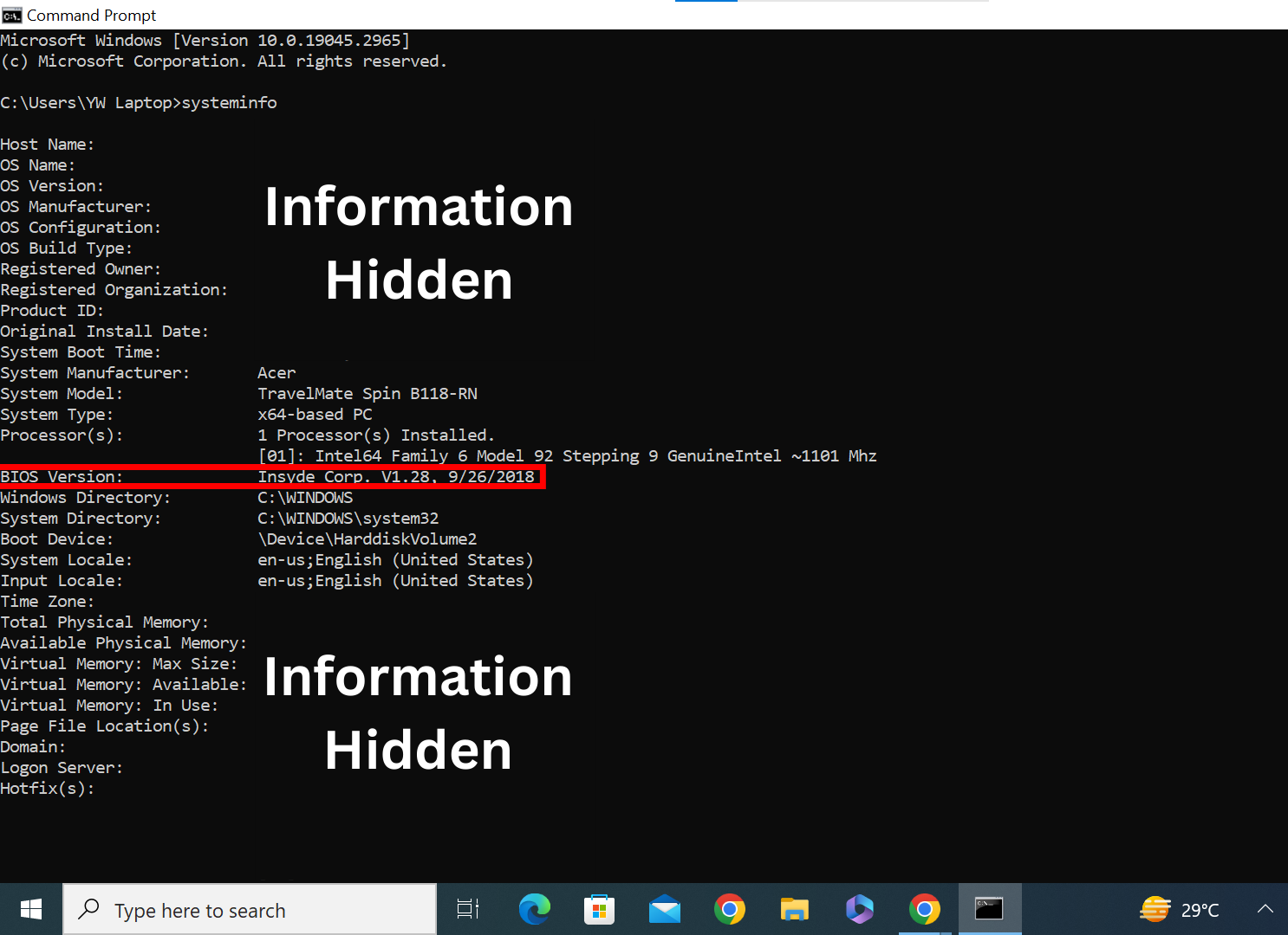 The systeminfo.exe command-line utility provides a comprehensive overview of your BIOS settings. This can tell you how old your computer is based on the BIOS version it uses, which is an accurate reflection of its age in certain cases.