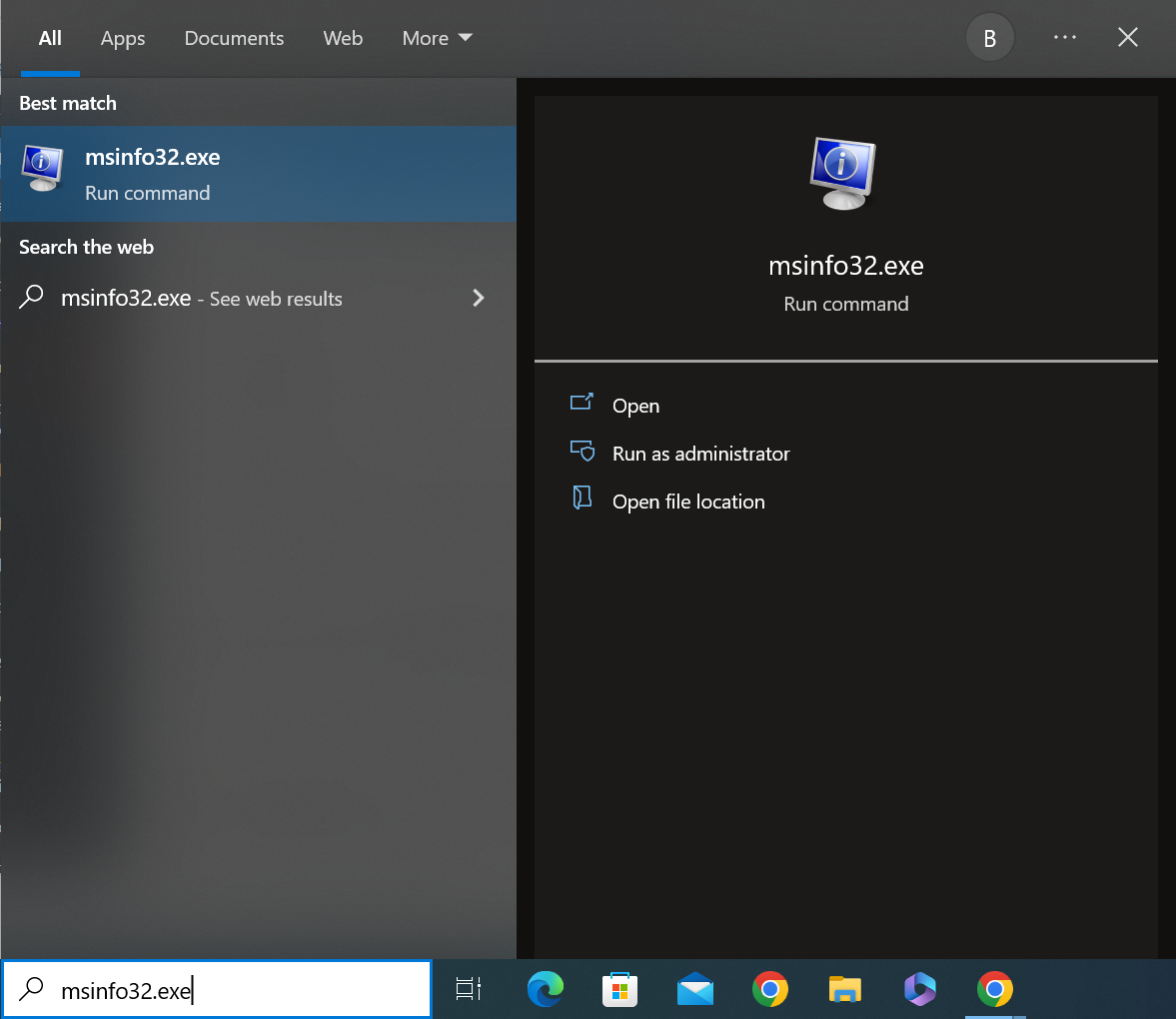 - Type sysinfo or msinfo32.exe into the Windows search box on the taskbar, and then click Run as Administrator