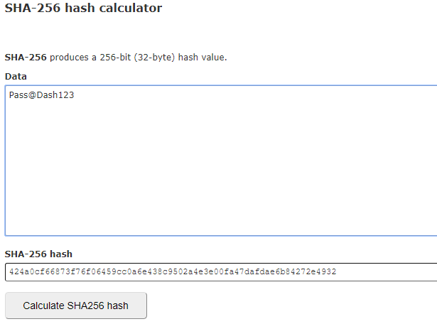 The concept of Hash key generation may a bit complex so I am going to using a very basic hashing program called SHA-256 to demonstrate how it works. Let’s assume that your master password is Pass@Dash123. When you run this through SHA-256 then the result is a 256-bit hash value that looks like this. “424a0cf66873f76f06459cc0a6e438c9502a4e3e00fa47dafdae6b84272e4932.”