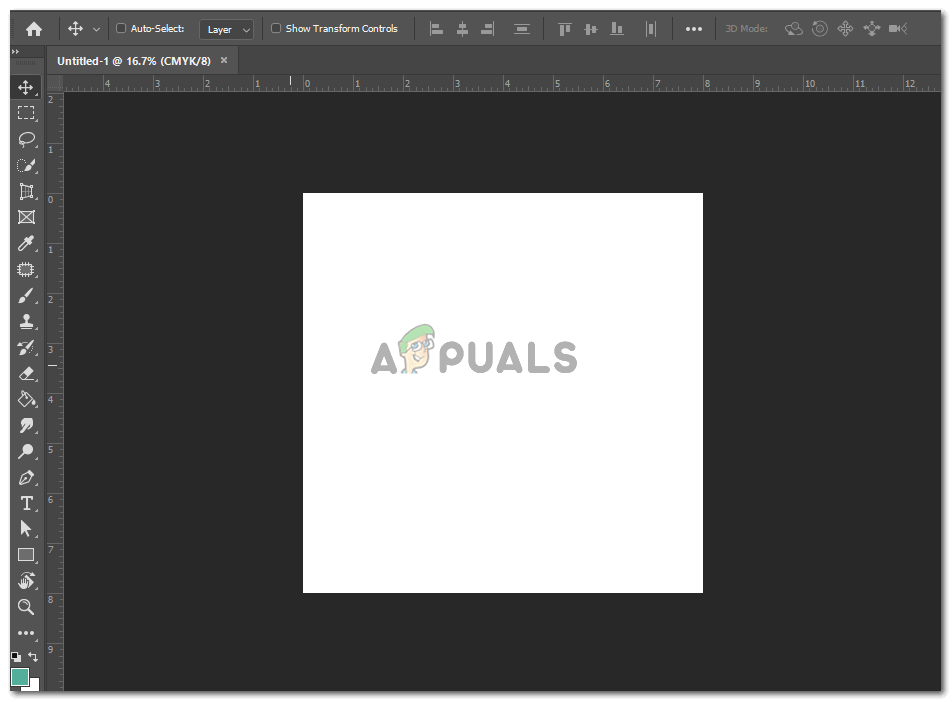 New file ready to be worked on. - See the Move tool on the left that is like a plus sign with arrows on all four sides. Click the right button of the cursor on this tab to see more options from the extended list.