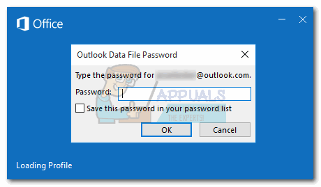 Note: Keep in mind that checking the box next to “Save this password in your password list” is not advisable if you share this computer will other people. If you check it, anyone that uses this computer will be able to explore your Outlook data files. - Once the password is enforced, you will be asked to insert it everytime you open Outlook.