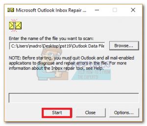 - Open SCANPST, load the copied PST file and click Start.