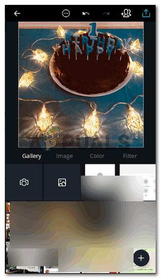 As the screen says, tap anywhere to start editing the canvas - Tapping on the screen will show you all the images that can be used from your gallery to make something on Canva. You can also click a picture right away and then edit it here. I selected this picture of a cake which one of my friends made for her sons birthday.