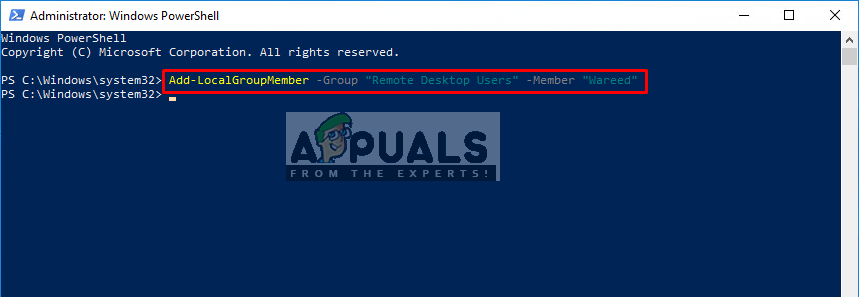 Add-LocalGroupMember -Group "Remote Desktop Users" -Member "User"