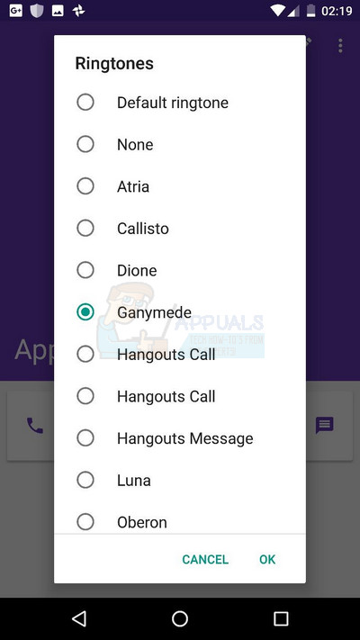 - Choose a tone from the list of ringtones provided and then tap OK.