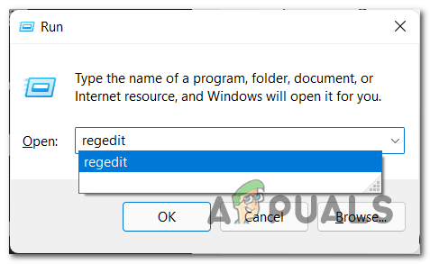 - Next, type regedit into the Run dialog and press Enter to launch the Registry Editor.