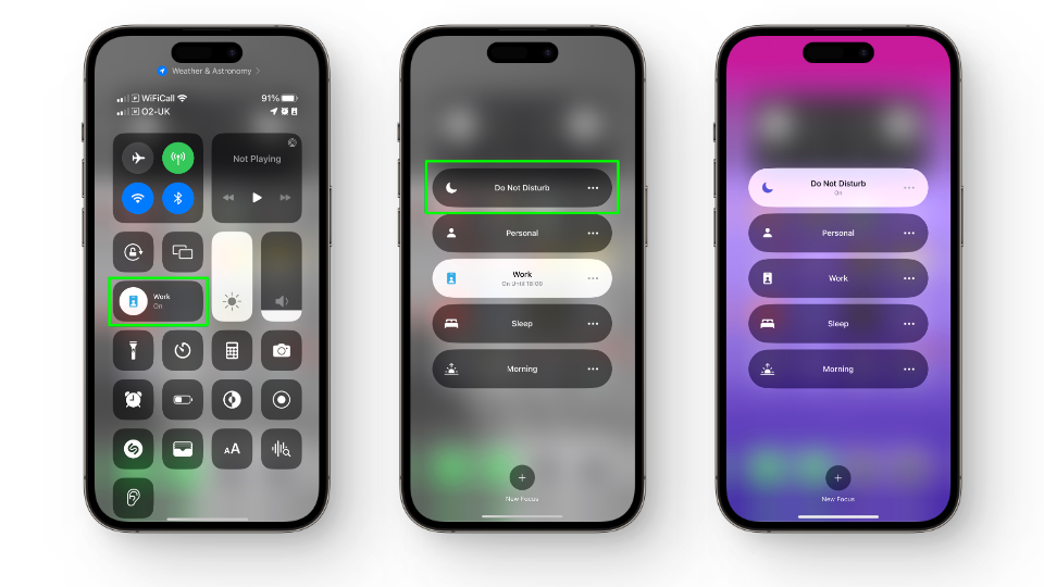 - Lastly, swipe down from the top-right to open Control Center, tap on Focus and turn on Do Not Disturb. For older iPhones with home buttons, swipe up from the bottom edge of the screen instead.