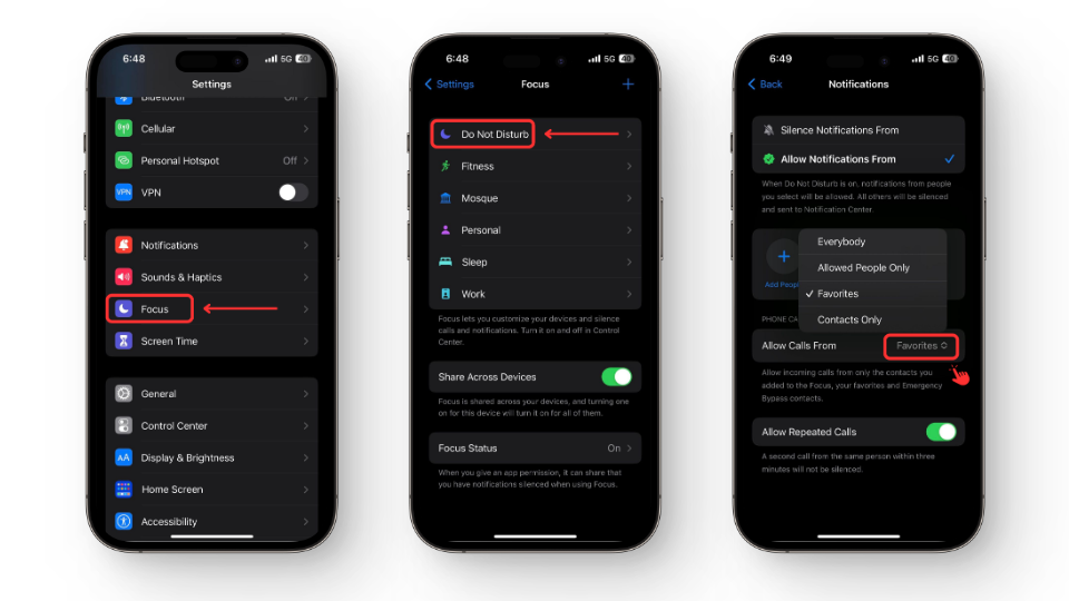 - Check your Do Not Disturb settings to ensure everything else is configured to your preference.