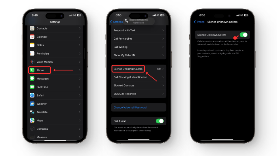 With this feature activated, calls from unknown numbers will go directly to your voicemail, minimizing unwanted interruptions.
