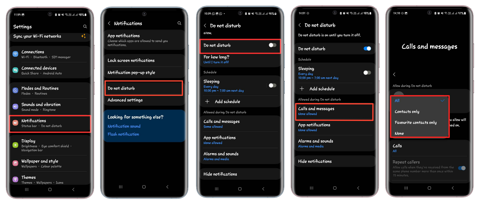 - A new option, “Calls and messages,” will appear. Here, choose your preference – either your preferred callers or all contacts. Adjust any other settings as per your needs.