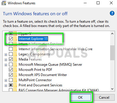 Windows has a utility called ‘features’ from where you can enable different applications and modules to run on your computer. This is usually used to control which older applications will be running at any instant. We can use Windows Features to disable and then enable IE to force it to refresh itself.