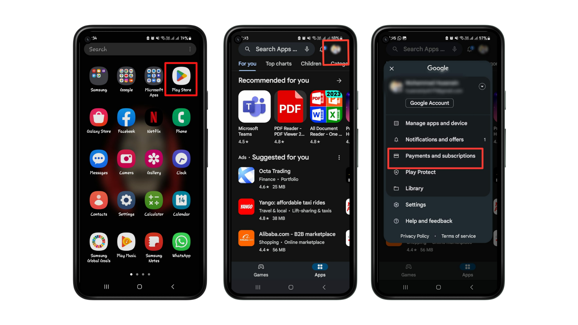 - Select “Payment and Subscriptions.”