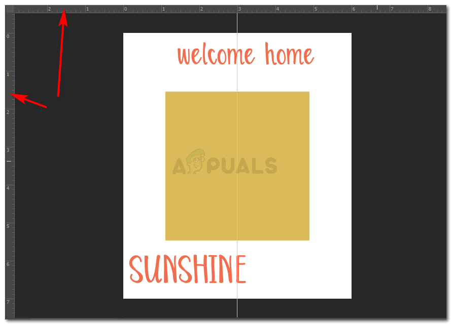 - See the rulers in the image below? You need to keep the cursor clicked on one side at a time, and manually drag a ruler to your canvas. Repeat the step for the other side. Since I want to center the text at the top, for this one, I will only adjust the vertical ruler.