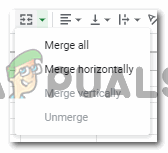 - Clicking on one of these options will instantly merge the cells. However, the text in the cell will not align to the center automatically.