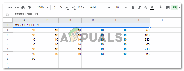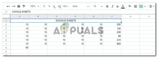 - When you need to merge cells, it does not necessarily have to be the first rows or columns. Anybody can find the need to merge any cells anywhere on the sheets. As an example, I used the first row to type the heading, that is, Google Sheets, and let the rest of the cells be empty. There are two ways to go about this. You either type down the heading in the first cell out of all the cells that you want to merge or, you can merge all the cells first and then add the heading to the merged cells. Either way, you will have to adjust the center for the heading in Google Sheets.