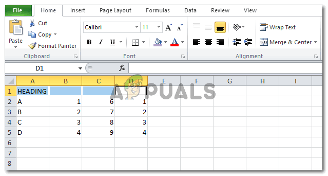 - I wrote the heading in the first cell. You can either write the heading first, and then merge the cells, or merge the cells first and then type in the heading. This is totally up to you. You will be able to merge the cells either way so it doesn’t really matter. Now to merge the cells, I selected all the cells that I wanted to merge.