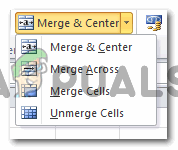 - Click on the downward facing arrow on this tab, which will show you more options for merge and center for cells.
