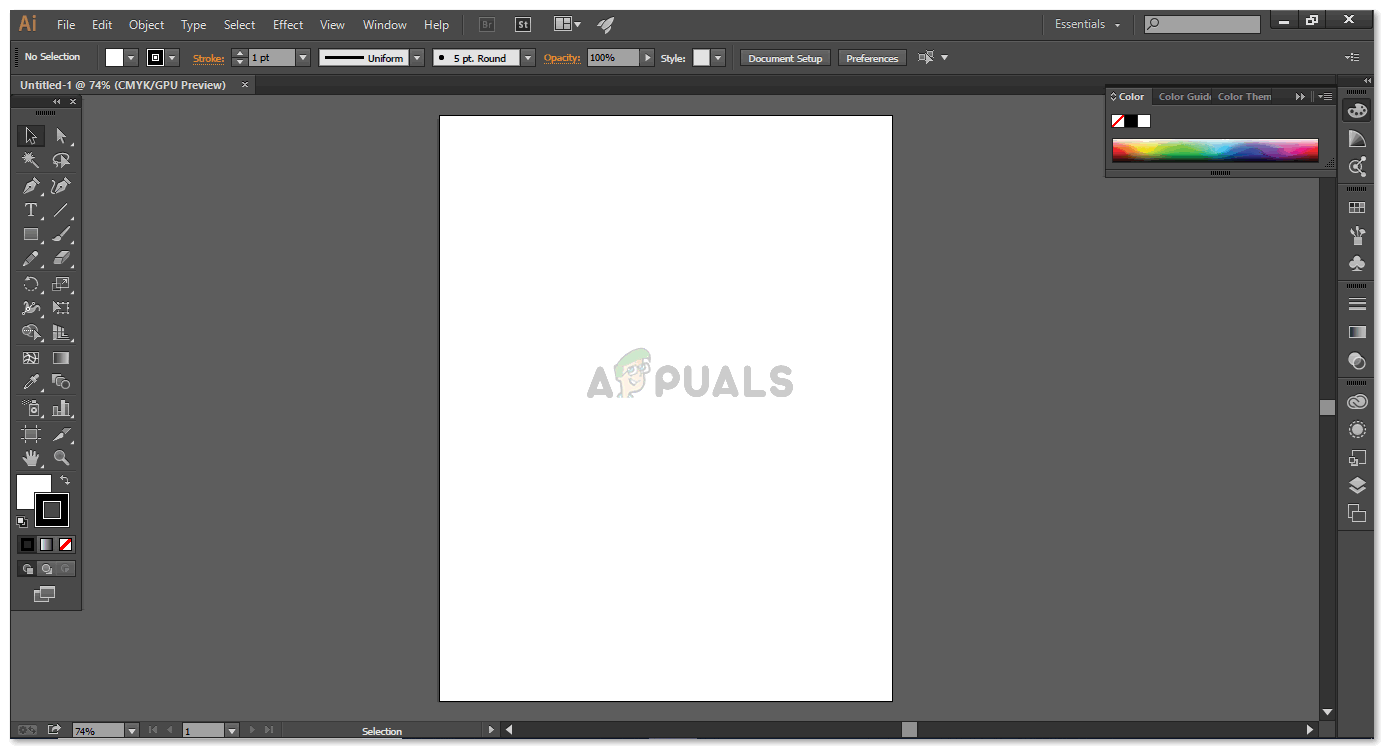 This is how your artboard looks like when you create a new file on Adobe Illustrator. - On the screens left side, you will notice a tools panel for Adobe Illustrator. Towards the end of it, you will notice the icon for Artboards, which looks like this.