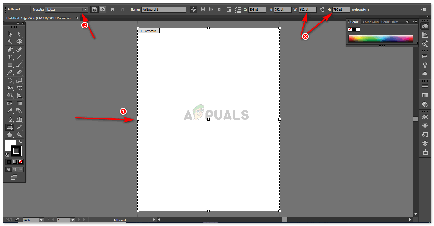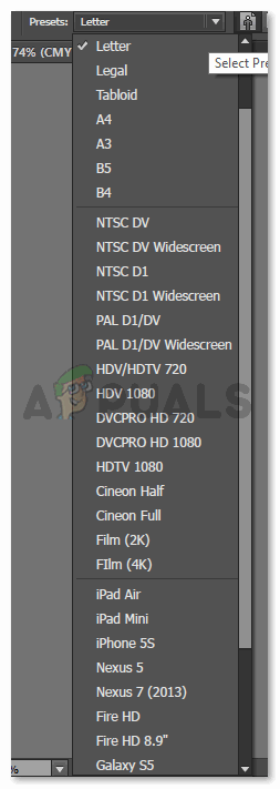 - The second point as marked in the image shows the presets. Presets are basically the inbuilt, already existing sizes of different documents, which can be used to make different projects. You can choose your required present and the artboard will adjust accordingly.