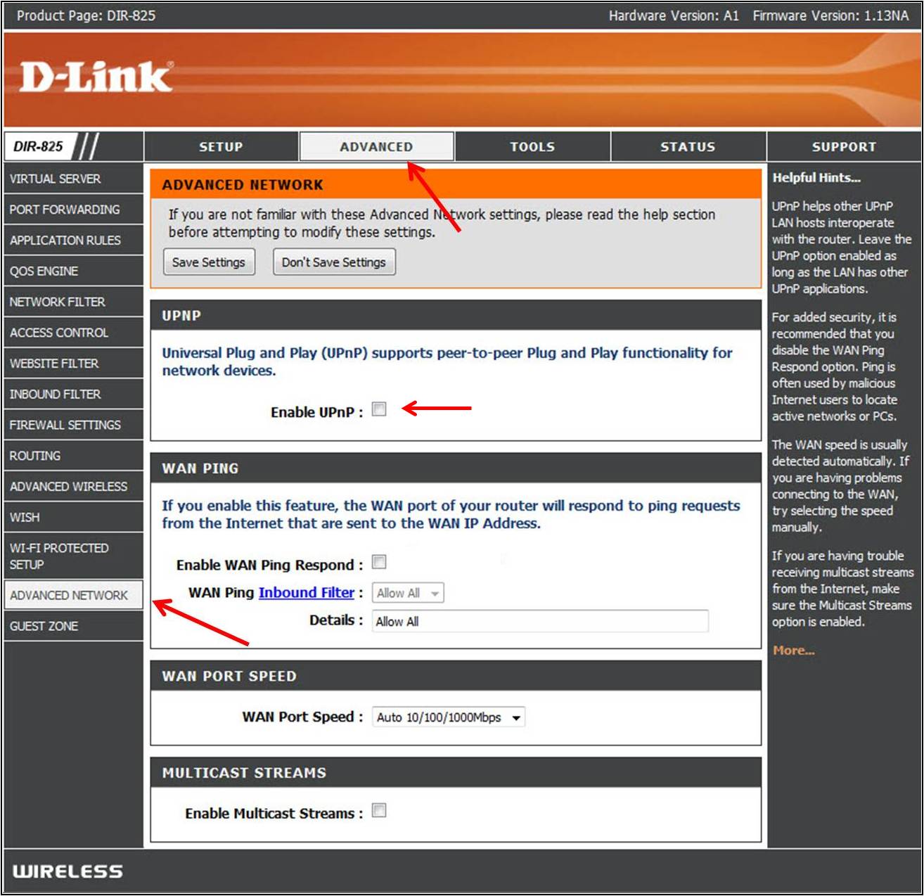 - Find a button for UPnP and turn it on, then click the save/apply button and if there is not UPnP button, then move to the port forwarding section of this article.