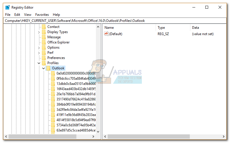 - Now, navigate to the profile key according to your Outlook version :