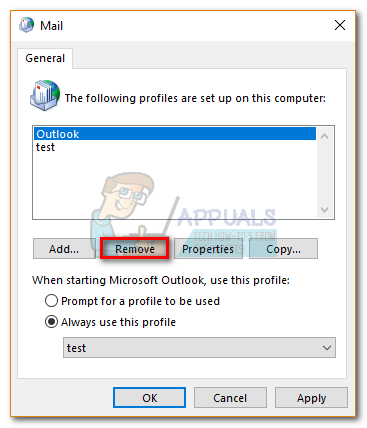In the steps below, we are going to remove all of the Exchange accounts from your current profile, while keeping the main account last. We’ll then add a PST file to the profile and make it get recognized as the default. Here is the step-by-step guide: