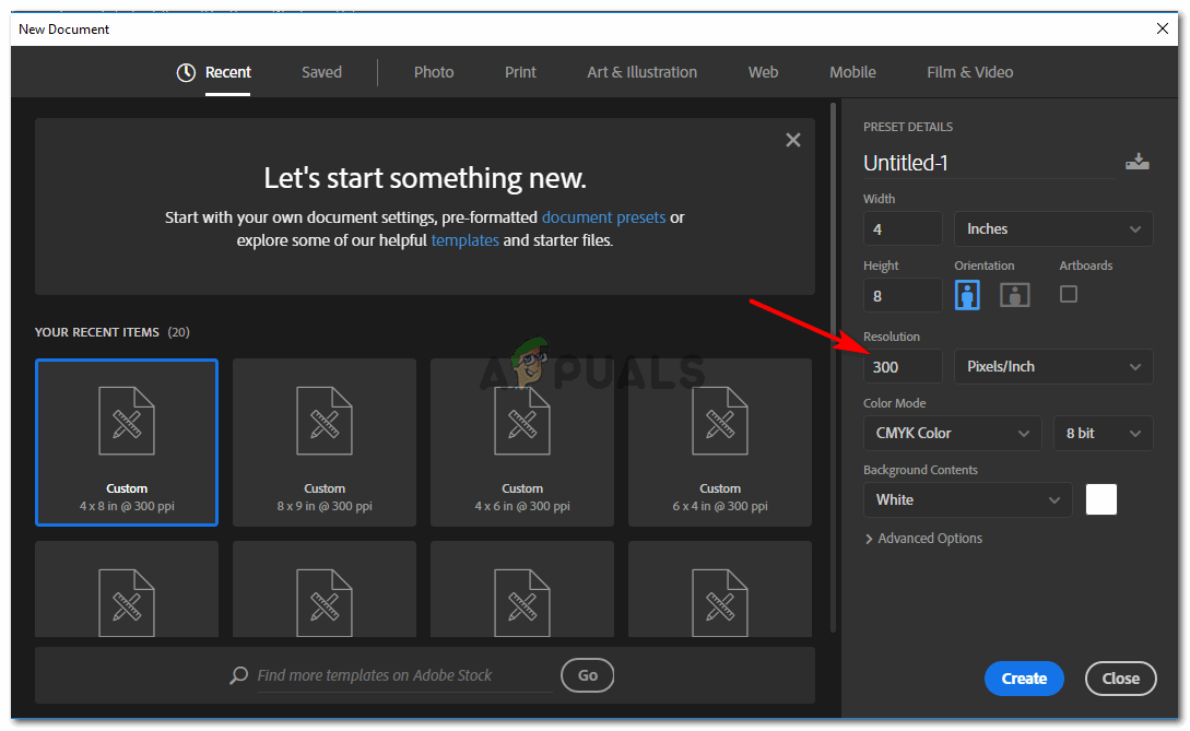 - When you open Adobe Photoshop and press the tab for Create new, Adobe Photoshop asks you the details about your canvas. On this same page, you will find the space for Resolution. This is where you will enter the required resolution for your work, which usually is 300 DPI for most of the designers. It can be higher, but lowering the DPI will lower the quality of your final outcome.