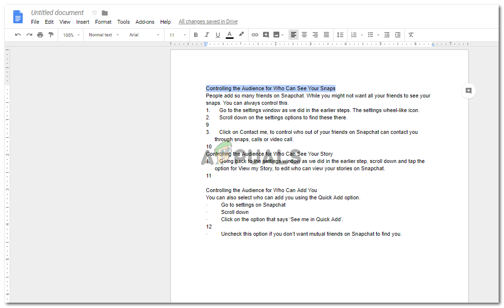 Open Google Docs from your Gmail Account - You can either open an already existing file on Google Docs or start making one from scratch. Either way, all you need to set formatting as default is a line long sentence. This is the sentence you will select on your document.