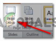 - If you want to adjust the slide size, you can do that manually. Click on the Page Setup option as shown in the picture below.