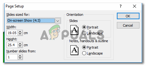 Method two, to change the orientation of your slide to vertical. A dialogue box will appear which will show you options for adjusting your pages in a presentation.