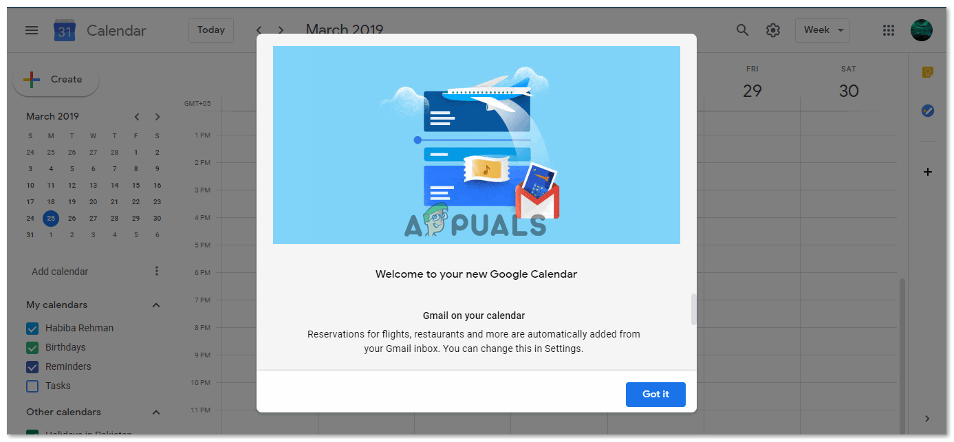 Since I opened the Google Calendar for the first time, this is what it looked like. Just click on ‘got it’ to proceed to your calendar. - When you see your Google Calendar in front of you, locate the settings icon towards the right top corner of the screen which looks like the usual settings icon for Gmail.