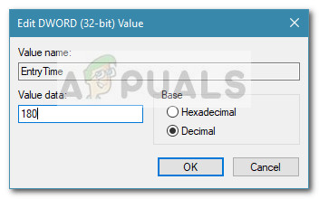 - Keep in mind that EntryTime is the time when Quiet Hours begin and ExitTime value is the value that holds the ending period. Next, open a value by double-clicking on it and set the Base option to Decimal. Now, in the Value Data box, type the number of minutes after midnight that you want to trigger the event. For example, if you want to set the EntryTime to 3 : 00 AM, set the value to 180 and hit OK.