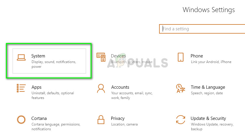 - Press Windows + S, type “Settings” in the dialogue box and open the Application.
