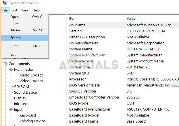 If you are looking for a detailed analysis of your computer, you can use the utility of System information to get the details of your internet components as well as third-party components such as Display, Multimedia, Ports, Storage etc. It is safe to say that this method yields the most detailed analysis of your computer and you will find almost all the information here under one screen.