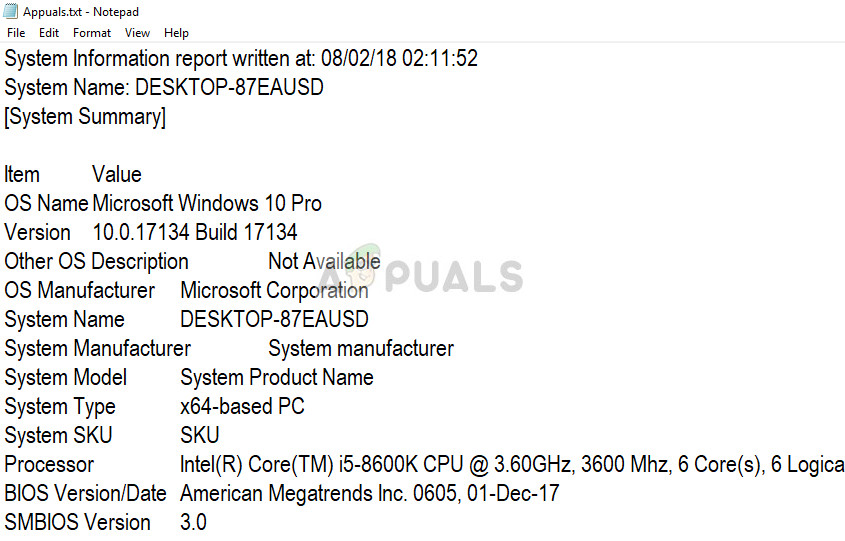 - The file will contain all the necessary details of your computer. You can send it, save it, or back it up if necessary.