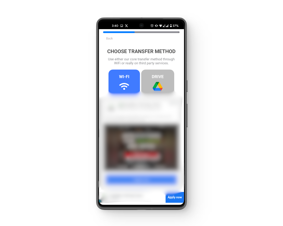 The app allows you to either transfer data over the same Wi-Fi network or restore a backup made on Google Drive. In this case, you may choose Wi-Fi so that both devices can pair with one another and share data over the same network.