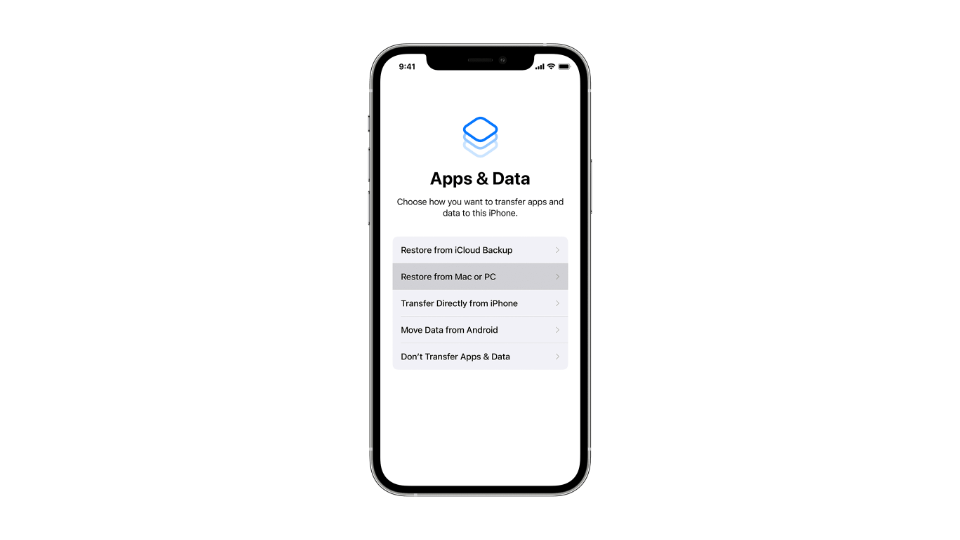 - Tap “Restore from iCloud Backup.“